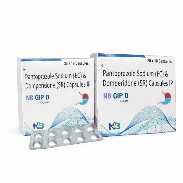 NB GIP D Capsules is a combination medicine containing Pantoprazole Sodium (Enteric Coated) and Domperidone (Sustained Release). It is specially formulated to provide effective relief from acidity, acid reflux, heartburn, gastritis, bloating, and indigestion.